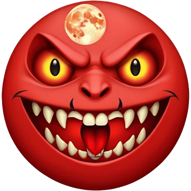 realistic full moon dripping red slime with vampire bat sharp fangs wings flying in front emoji