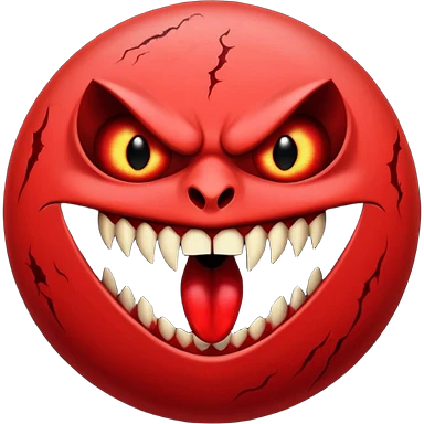 cartoonish black bat with sharp fang teeth dripping red slime in front of full moon emoji