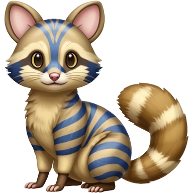Gold and cobalt-blue-striped Furret-Sentret-Genet-Civet-Cacomistl-hybrid-fusion (full body) emoji