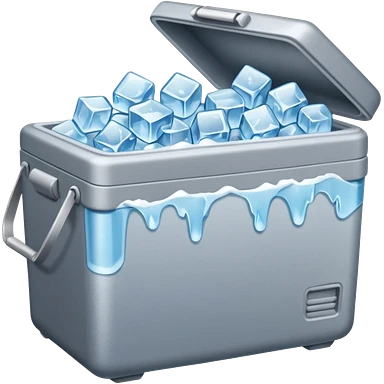 An open gray cooler getting dumped out with a bunch of ice spilling out emoji