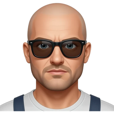 More hard look bald man with light beard and sunglasses emoji