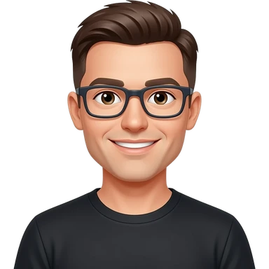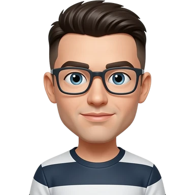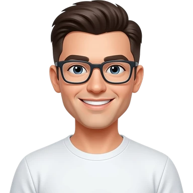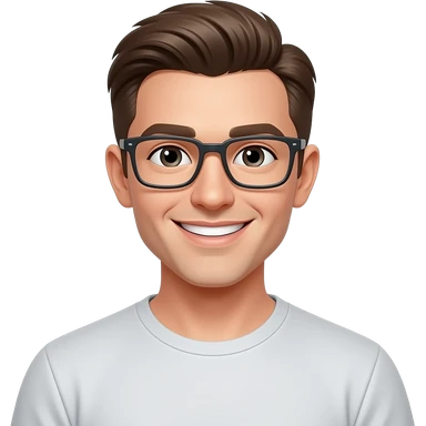 skinny man, with rectangle glasses, white skin, with modern all top hairstyle, nice smile, wearing tshirt, emoji