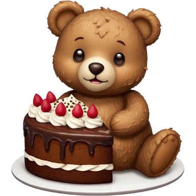 Morning teddy with chocolate cake emoji