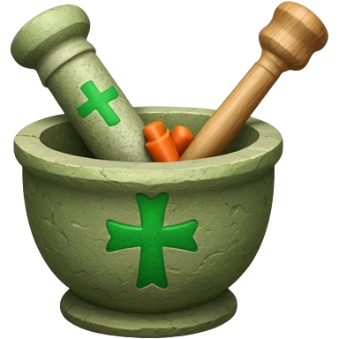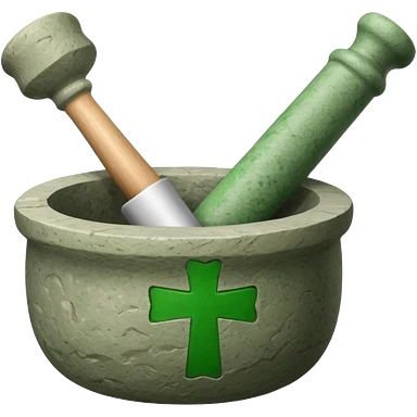 mortar with pestle, with green cross on mortar. only one pestle emoji | AI Emoji Generator