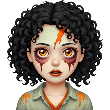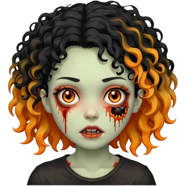 Faça uma garota zumbi de cabelo cacheado preto e uma mecha descolorida meio alaranjada do lado esquerdo emoji