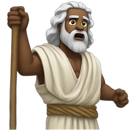 Moses standing with his rod, dramatic pose, ancient robes, desert background, emoji style emoji
