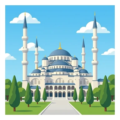 mosque silhouette with dome and minarets, soft blue and white, emoji style emoji