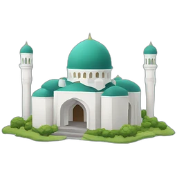 mosque silhouette with dome and minarets, soft blue and white, emoji style emoji