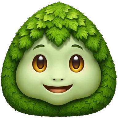 Fabulous forest creature as an emoji: body covered with green leaves and moss; branches instead of hair; arms with woody textures; powerful legs. No background emoji