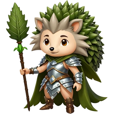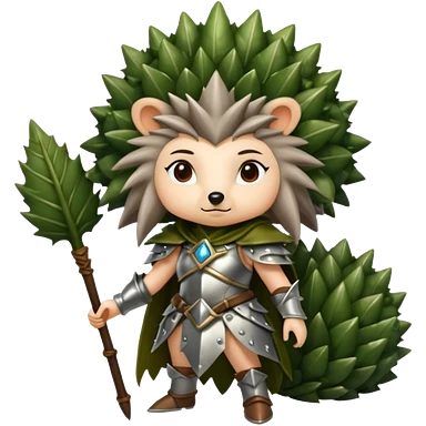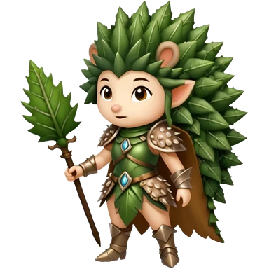 moss witch woman dressed as hedgehog guardian, thorny leaf armor emoji