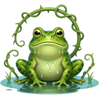 Mosskip A frog-like plant creature with lily pad markings and damp green skin. It can sit still for hours and look just like part of a pond. emoji | AI Emoji Generator