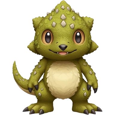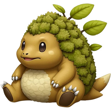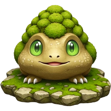 Sandy Earth-tinted Warm Stone-Crusted Mossy Pokémon-Fakémon-Digimon-Creature, (full body) emoji