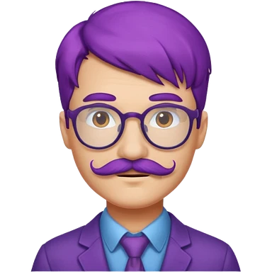 a young boy with short blonde hair with transparent white glasses and a little mostache, he is a futuristic cyberpunk hacker emoji