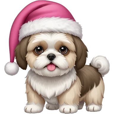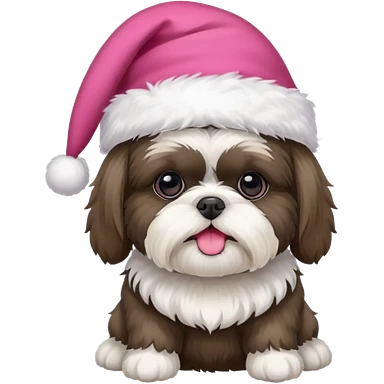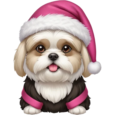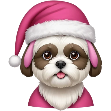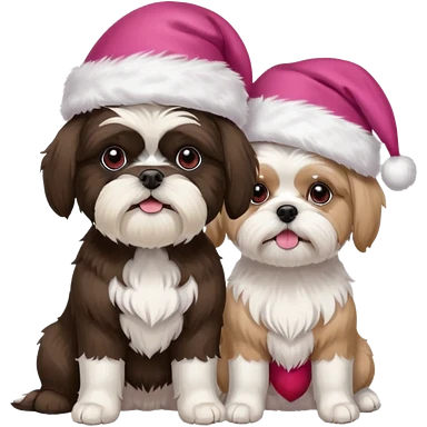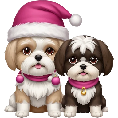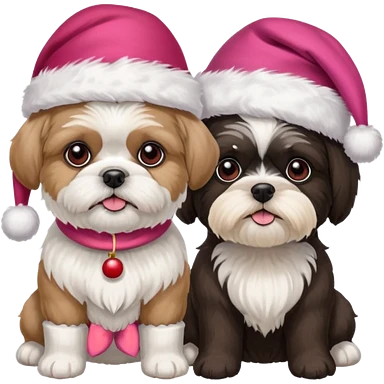one little white all over shih tzu dog with pink santa hat and one mostly white with black havanese dog wearing a red santa hat emoji