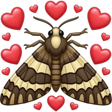 Moth surrounder by hearts emoji | AI Emoji Generator
