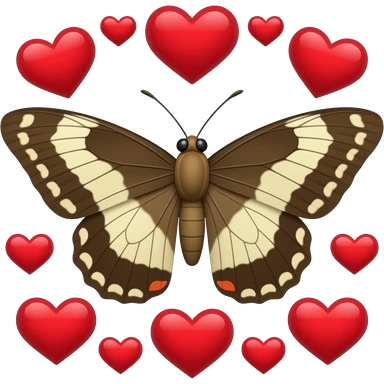 Moth surrounder by hearts emoji