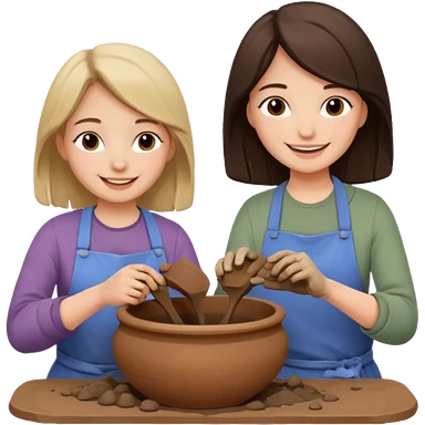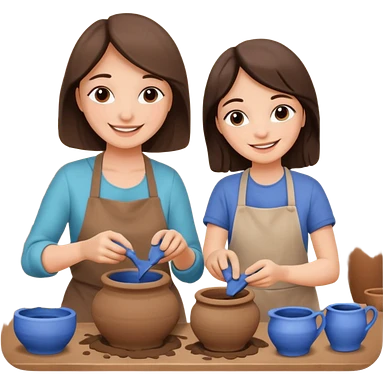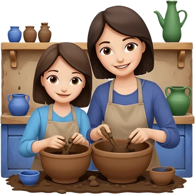 mother and daughter doing potery emoji