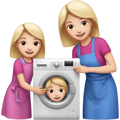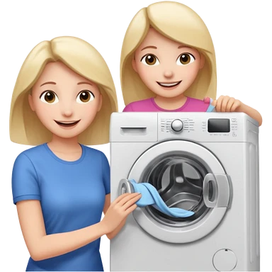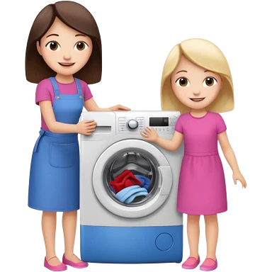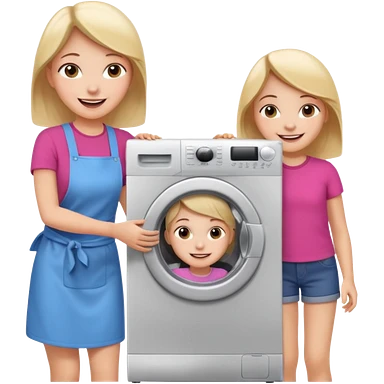 Mother and little daughter opening a washing machine door emoji | AI Emoji Generator