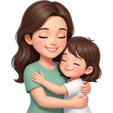 Mother and daughter long black hair smiling hugging wearing pink emoji