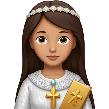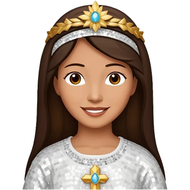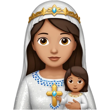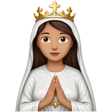 Mary, mother of Jesus from The Bible with dark brown hair, white sequin outfit emoji