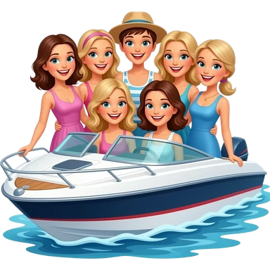 bunch of ladies on a motorboat at sea emoji