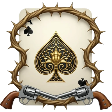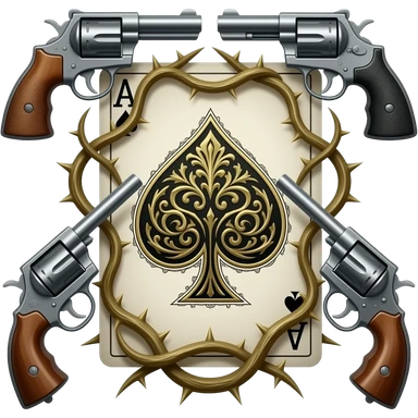richly ornamented spade ace surrounded by tendrils of thorns and antique 1851 Navy Revolvers and Rickenbacker Motorhead MODEL 4003SW emoji
