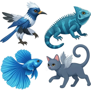 Mountain-Blue-Bird-Blue-Iguana-Blue-Betta-Fish-Russian-Blue-Cat-Fusion-animal-hybrid-creature emoji