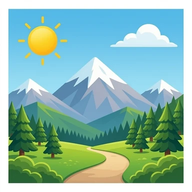 A detailed emoji-style illustration of a majestic mountain goat standing on top of a rugged mountain peak. The goat has large, curved horns and a strong stance, with a scenic background of a golden sunset. The image should capture the silhouette effect while maintaining expressive and cute emoji-like details emoji