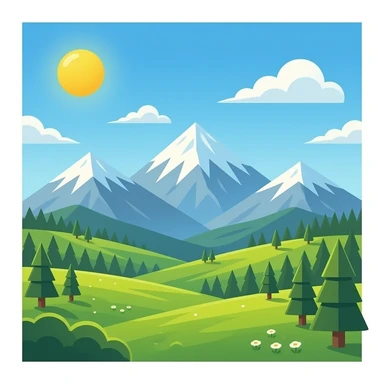 An icon featuring majestic mountains, lush green valleys, and a bright blue sky with fluffy clouds. The sun casts warm light over the landscape, emphasizing the beauty of outdoor cycling and a mountain bike standing on a scenic trail. emoji