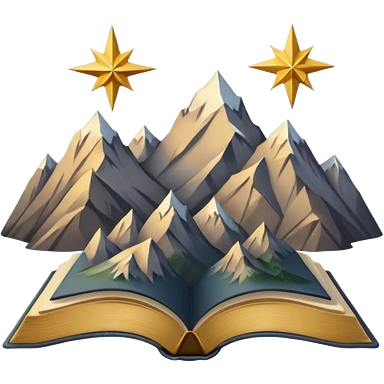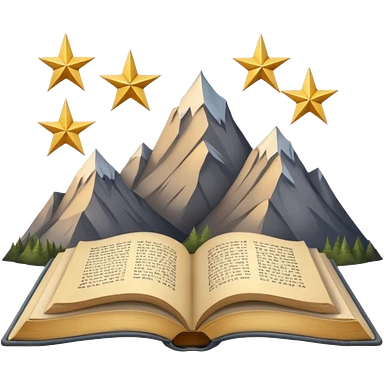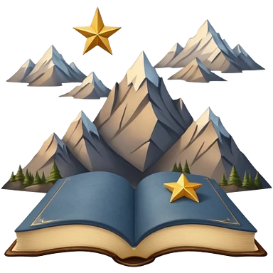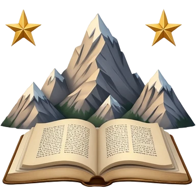 three mountain peaks of gray color, above each of the peaks there is a golden star, in front of the mountain peaks there is an open book emoji