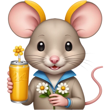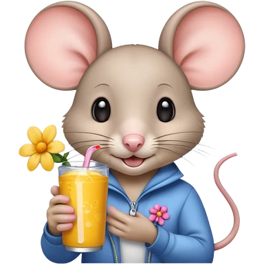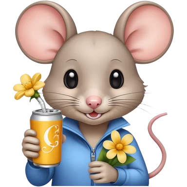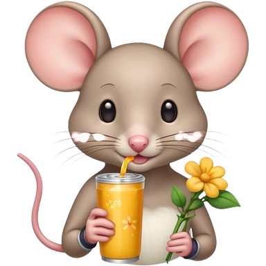 pretty mouse with flowers drinking energy drink emoji