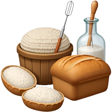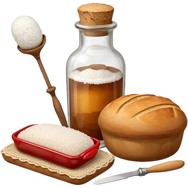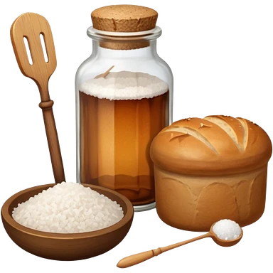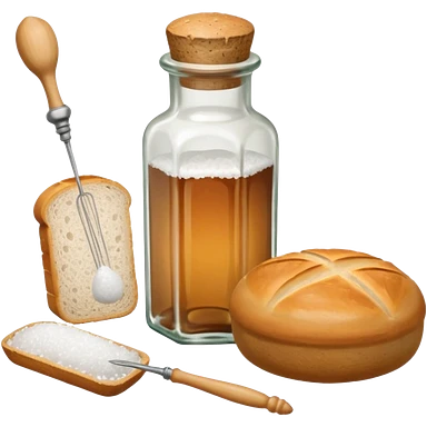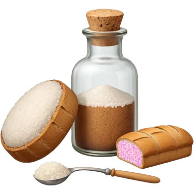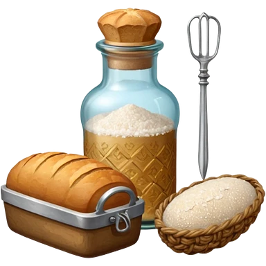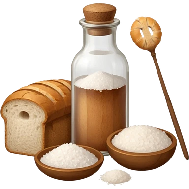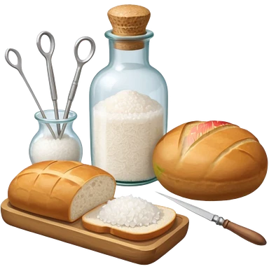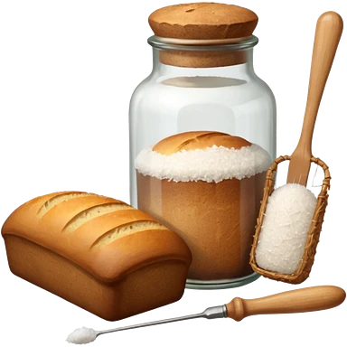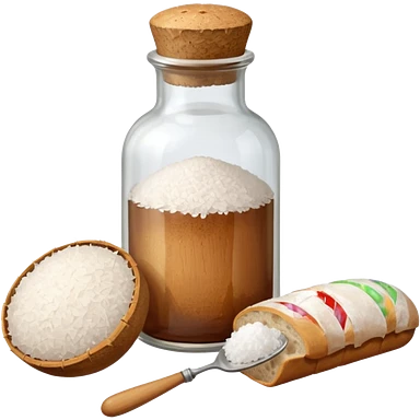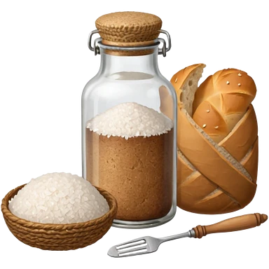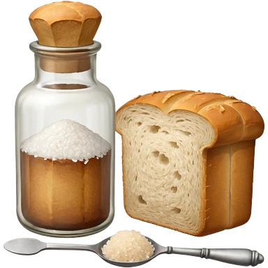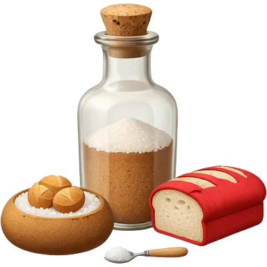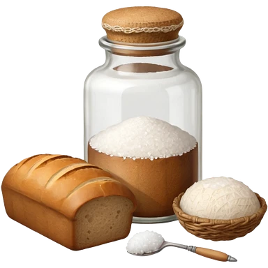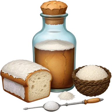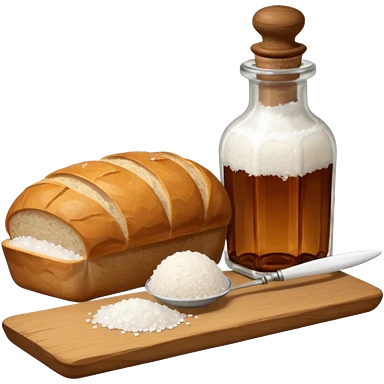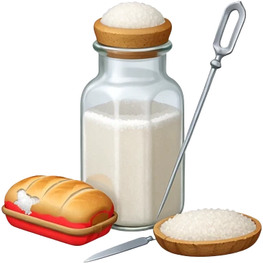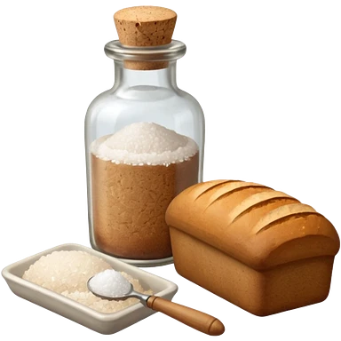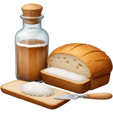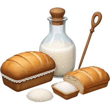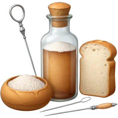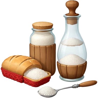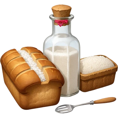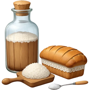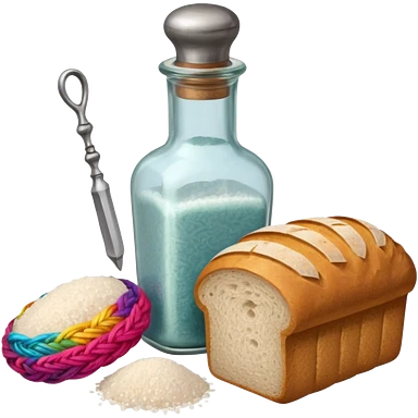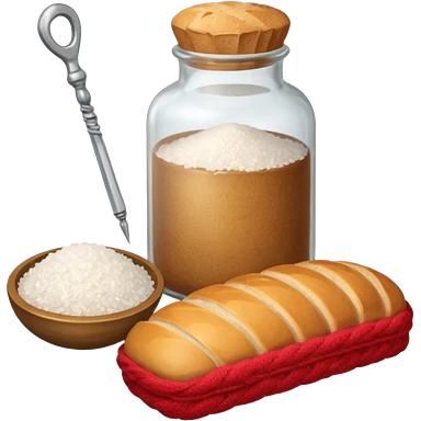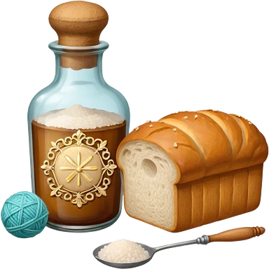 a one victorian bottle of salt and a loaf of bread - crochet needles and a ball of wool emoji