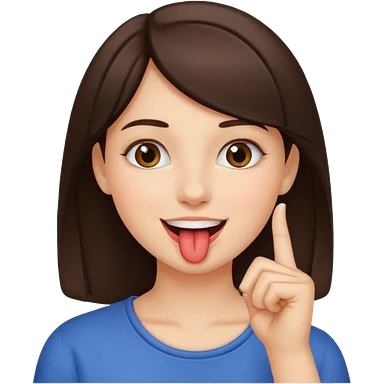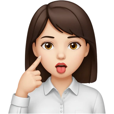 A brunette girl sucks her index finger with her mouth. emoji