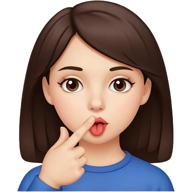 brown-haired woman with straighted long hair, shows her index finger in front of her mouth emoji