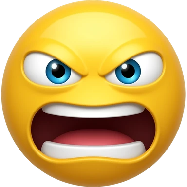 Distorted 2D yellow emoji face, wide-stretched screaming open mouth, slightly shifted and bulging eyes, hyper-expressive and intense hype expression, minimalist cartoon style, vibrant colors, isolated on a white background emoji