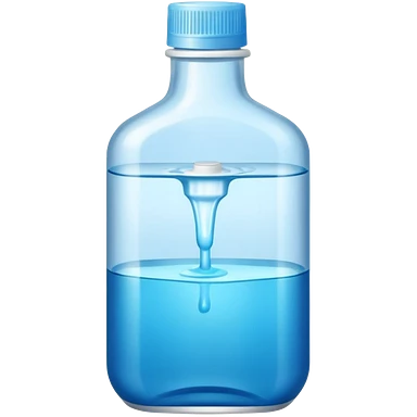 Turquoise Mouthwash bottle with white stickers and brown tap , the white stickers have red letters that say kills 99% of batería emoji