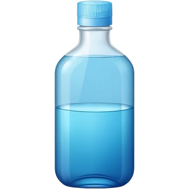 Turquoise Mouthwash bottle with white stickers and brown cap . the white stickers have small red letters that say kills 99% of batería emoji