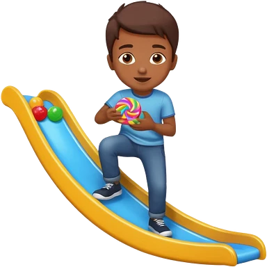 un niño blanco tirandose por un tobogan con dulces en las manos emoji