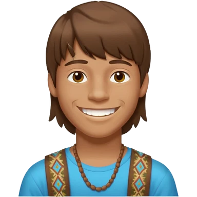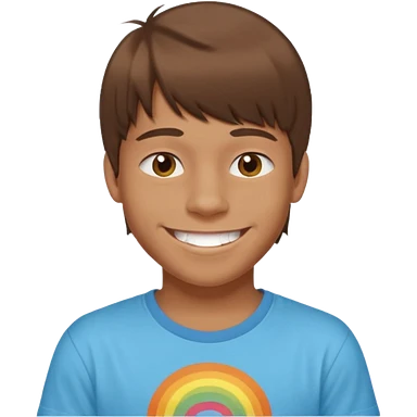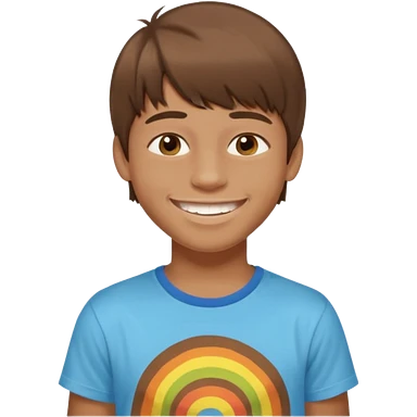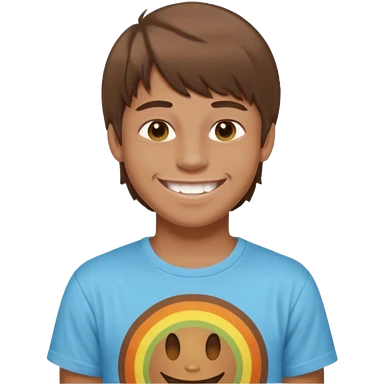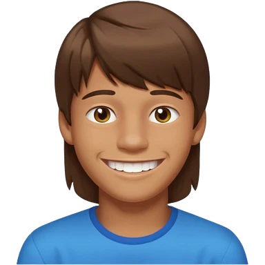 16 yr old boy, brown hair, straight, big smile, white teeth, tanned skin, bangs, hippie part emoji