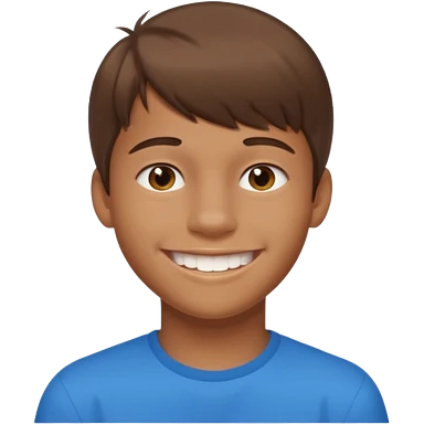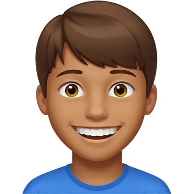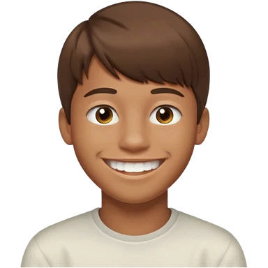 16 yr old boy, brown hair, straight, big smile, white teeth, tanned skin, bangs emoji