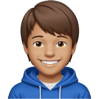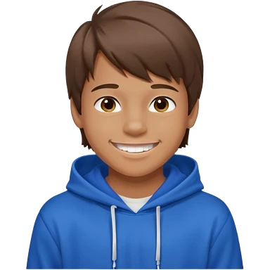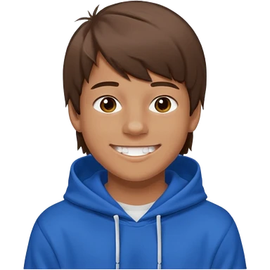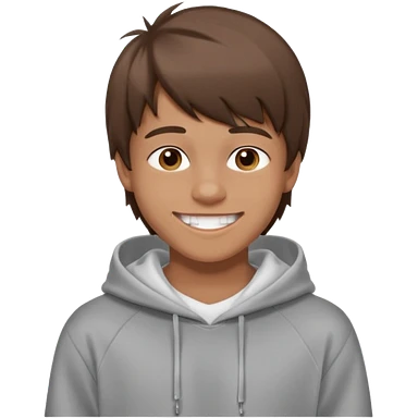 16 yr old boy, brown hair, straight, big smile, white teeth, tanned skin, bangs, hooded sweatshirt emoji