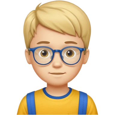 10 years old boy with glass and yellow T shirt and blue trousers emoji