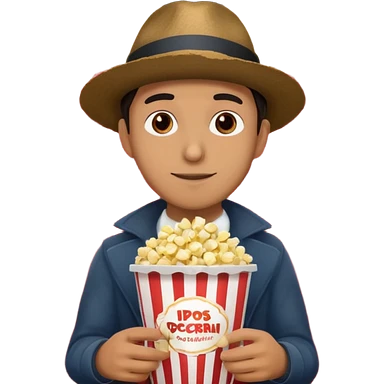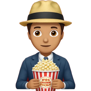 Movie theater with lights shining upward from left and right and a big sign displaying the movies playing emoji