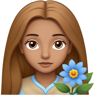 Cheveux un peu plus clair des cils moyen et des sourcils clair des cheveux plus long et une fleur bleu clair emoji
