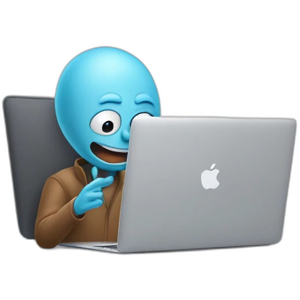 Mr. Meeseeks working on macbook emoji | AI Emoji Generator