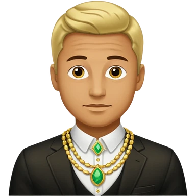 realistic iPhone emoji style portrait of Volodymyr Zelensky, Ukrainian president, with recognizable facial features, formal suit, serious expression emoji