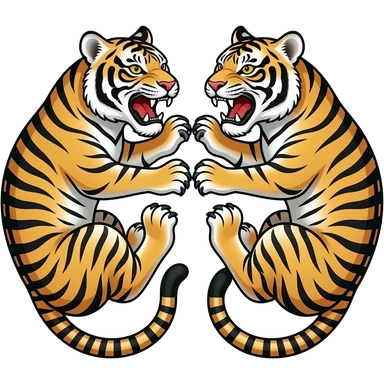 Muay thai Sak yant twin tigers tattoo with thai writing emoji | AI Emoji Generator