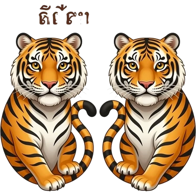 Thai Sak yant twin tigers tattoo with thai writing emoji