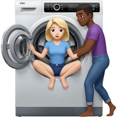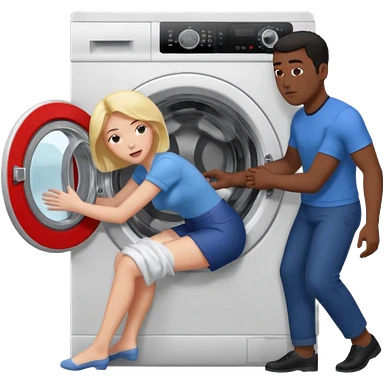 Eine Frau steckt bis zum Bauch in einer Waschmaschine fest und nur die Beine gucken raus und zwei schwarze männer ziehen an ihren Beinen um sie raus zu holen emoji