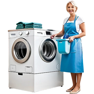 Eine Frau mit dem Kopf in der Waschmaschine feststeckt und zwei Männer die hinten an ihr ziehen um ihr zu helfen emoji